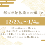 2025年12月27日(土)~2026年1月4日(日)まで休業させていただきます。